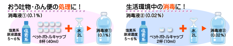 - おう吐物・ふん便の処理・・・消毒液1(0.1%)