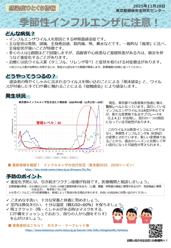 都内のインフルエンザ、警報基準を超える(東京都)(外部サイト)![]()