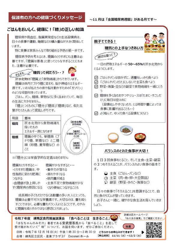 情報紙「ねりまの家族の健康を応援します」令和7年11月号