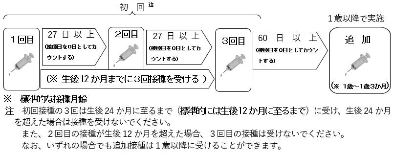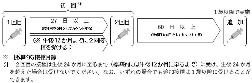 1. 初回接種の開始が、生後2か月から7か月に至るまでの場合 4回接種(標準接種スケジュール)