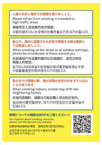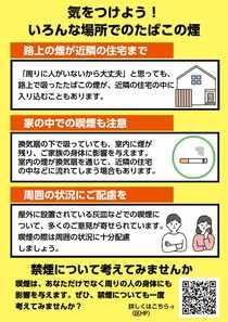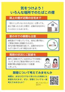- 本チラシは、屋外等での喫煙について一定の配慮をお願いするものであり、喫煙者や喫煙行為を非難するものではありません。