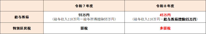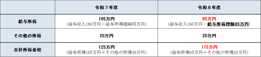 令和7年度税制改正により、令和7年中の給与所得控除の最低保障額が55万円から65万円に引き上げられました。