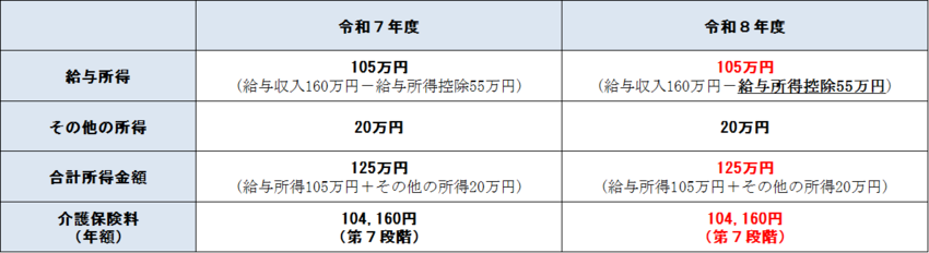 - 給与収入が変わらなければ、令和8年度の介護保険料は令和7年度と同額になります。