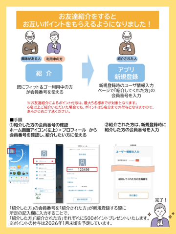 お友達紹介をするとお互いポイント(500ポイント)をもらえるようになりました!
