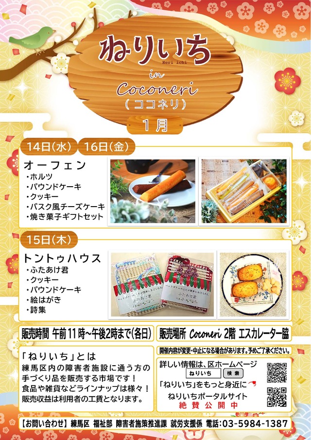 - 障害者による手づくり品販売市場「ねりいち」販売予定(令和8年1月)