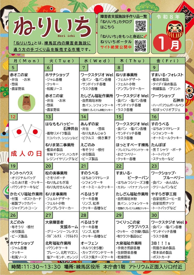 障害者による手づくり品販売市場「ねりいち」販売予定(令和8年1月)