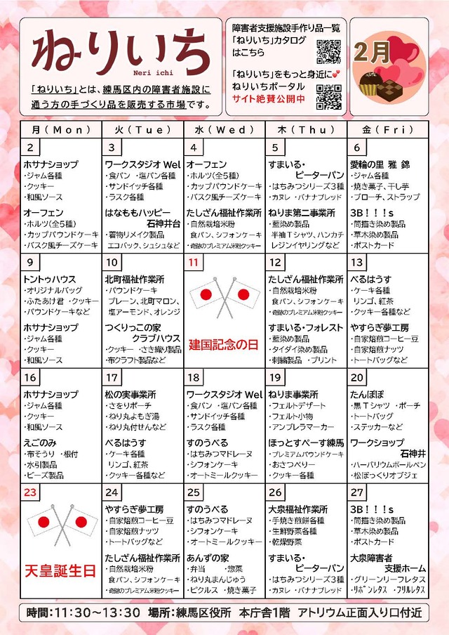 障害者による手づくり品販売市場「ねりいち」販売予定(令和8年1月・2月)