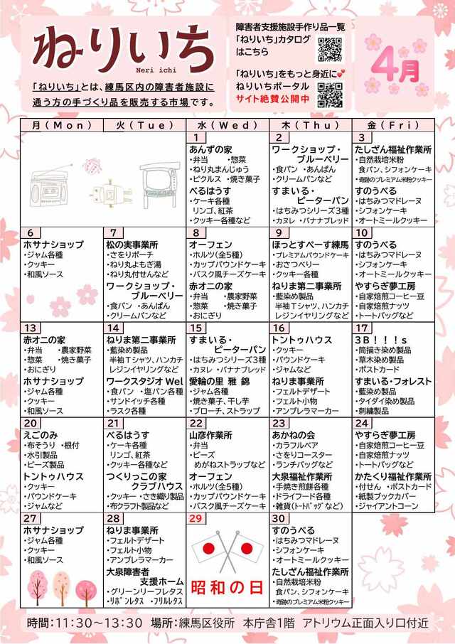 障害者による手づくり品販売市場「ねりいち」販売予定(令和8年4月)