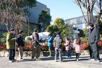 美術家として活躍している光島貴之さんと一緒に中村橋駅周辺を歩いて、音やにおい、手触りを感じながら、まちの魅力を再発見します。感じたことをもとに手で触れて楽しめるアート作品をグループごとに作ります。