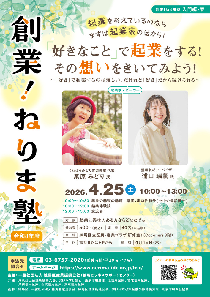 【参加者募集】創業!ねりま塾 入門編・春「好きなことで起業をする!その想いを聞いてみよう!」