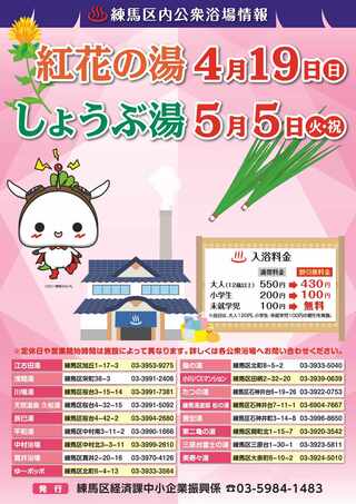 区内公衆浴場で「紅花の湯」・「しょうぶ湯」を実施します