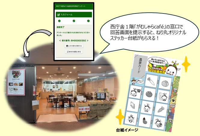 ねり丸直売所や区役所マルシェなどで配布しているねり丸ステッカーを貼ることができる、特製台紙をお渡しします。