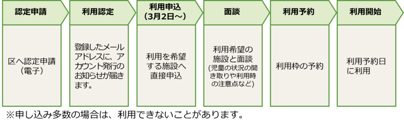 区へ利用要件を確認のうえ認定します。原則、ぴったりサービス(児童のマイナンバーカード)からご申請ください。