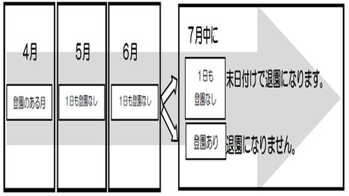 - 認可保育園に在園されている場合、1日も登園しない月が3か月続いた場合は、退園になります。(下図参照)