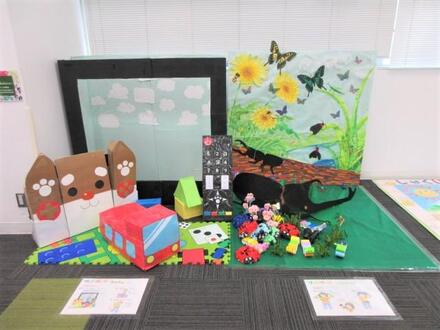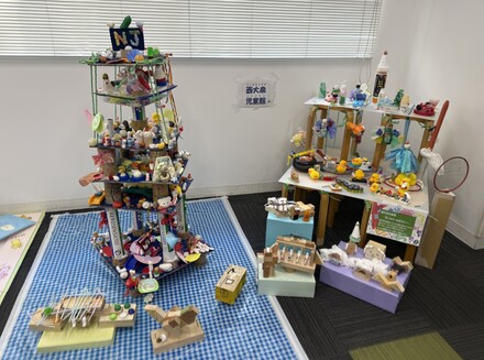 「巨大化計画~大きくなっちゃった?!小さくなっちゃった?!~」をテーマにバラエティ豊かな展示作品が並んだほか、遊びや工作が体験できるコーナーもあり、幼児から大人まで1586人の方にお越しいただきました。