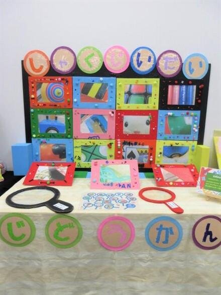 石神井台児童館「ちょっとのぞいてみてごらん」児童館にある遊具が大きくなっちゃった!大きな虫眼鏡でのぞいてみることができます。