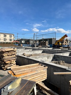 古い校舎を解体する前に校庭に仮設校舎を建設し、新しい校舎の建設工事に備えます。