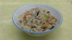 練馬大根を炒めて、大根と葉をまるごと入れたご飯です。他の野菜等をいろいろ入れてアレンジしても楽しめます。