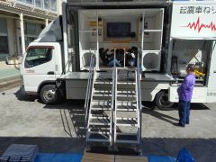 豊玉・開進地区では、小竹小学校にて防災課の協力を得て、起震車や煙ハウスの体験をしました。