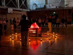 また、台風のため行くことができなかったキャンプの雰囲気を少しでも体験できればと模擬キャンプファイヤーを行いました。
