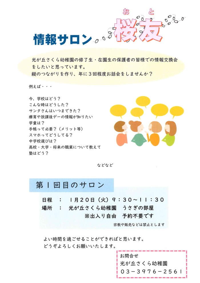光が丘さくら幼稚園の在園生の保護者方、修了生の保護者の方が対象です。