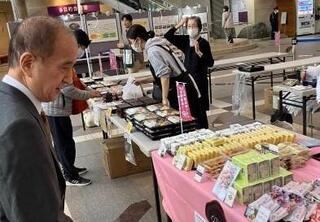 区役所本庁舎1階アトリウムにて行われた「マルシェ de 延伸 大江戸線」を視察しました。大江戸線の延伸地域で生産されたとれたて野菜、ねりコレ認定品のお菓子やお弁当などが販売されました。