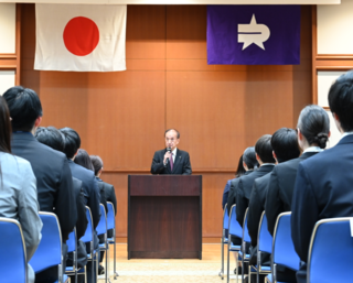 区役所にて、令和7年4月1日付け採用職員の発令式を行いました。辞令の交付および採用職員の代表による服務の宣誓を受けました。練馬区職員としての第一歩を踏み出した皆さんを心から歓迎します。広く住民全体の為に行政サービスを改革し、発展させて行くことが公務員の仕事であり、役割です。公務員としての道を歩き始めた皆さんが、公務員として、また一人の人間として大きく成長するよう、心から期待しています。