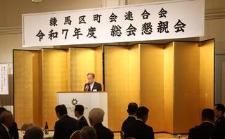 練馬区町会連合会懇親会に出席しました。町会・自治会の皆さんには、日頃から地域の防犯パトロールや防災訓練、清掃活動、公設掲示板の管理など地域のためにご尽力頂いています。心から感謝申し上げます。