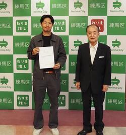 区役所にて、「令和7年度認定新規就農者認定証交付式」を行いました。新たに農業経営を営もうとする青年等の「青年等就農計画」を区が認定し、支援しています。今回は1名の方に認定証を交付しました。