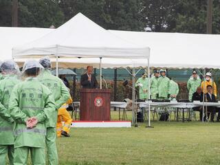 石神井公園内の野球場にて行われた、練馬、光が丘、石神井の各消防団が合同で実施する「令和7年度消防団合同点検」に出席しました。消防団の皆さんは、お仕事を持たれながら、日夜訓練を重ね、地域防災のために活動されています。合同点検開催に御協力頂いた区内3消防署の皆さん、また、日頃から消防団活動に御理解、御支援を頂いている関係団体、地域の皆さんに心から感謝を申し上げます。引き続き、「災害に強い安全なまち練馬」の確立に全力を尽くします。