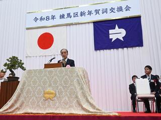 光が丘体育館にて、区議会と共催で令和8年練馬区新年賀詞交換会を行いました。日頃から区政をご支援頂いている、区内各界を代表する皆さんにお集まり頂きました。会には977名が参加し、新年の挨拶を交わしました。