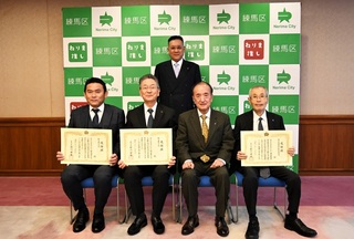 区役所にて、令和7年度練馬区納税功労者感謝状贈呈式を行いました。納期内納税や口座振替の勧奨、未来の納税者である子どもたちへの租税教育など、納税意識の啓発に御尽力頂いた3名の方々に感謝状を贈呈しました。