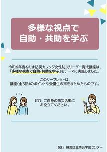 ねりま防災カレッジで実施している【女性防災リーダー育成講座】の内容と受講者の声をまとめたリーフレットです。