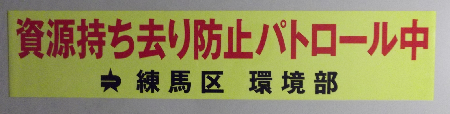 練馬区のマークが入ったマグネットシートが、持ち去り車両と区別する目印です。