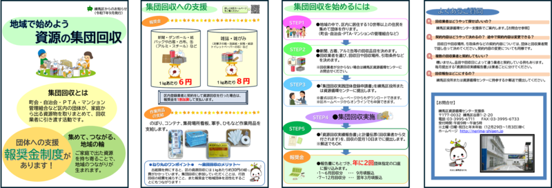 区内の町会・自治会の多くが、集団回収を行っています。団体の連絡先などは、練馬区資源循環センターまでお問い合わせください。