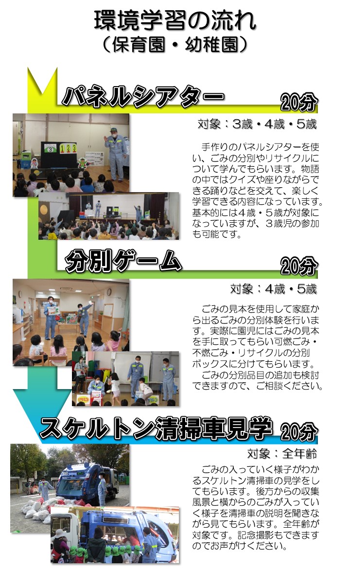 清掃事務所職員が、各園に出張して次のプログラムを実施する。