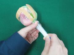 【6】水切りネットを飲み口に通して引っ張ると水が絞れます