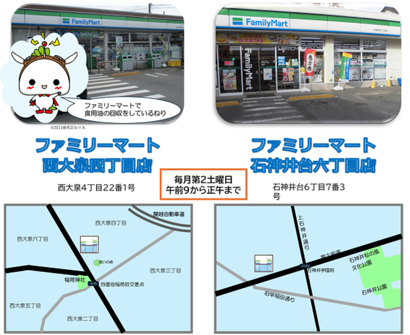 株式会社イトーヨーカ堂は、練馬区内の下記店舗でリターナブルボトルを活用した廃食用油回収を行っています。