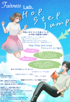 内容:学校に行きづらさを感じている子どもを対象に、将来の自立に役立つ技能検定(英検、漢検など)の取得を目指します。“学校にはなかなか行けないけれど、将来に役に立つ検定を手にして幸せに生きていきたい”という不登校の子の真実の気持ちを聞いたとき、私達はHop Step Jumpプロジェクトの発足を決意しました。現実を可視化することによって、自分を信じる力は、将来大きな宝物となります。学びたい気持ちを大切に、子どもに寄り添い、成功体験の可視化を目指すことを目的としています。