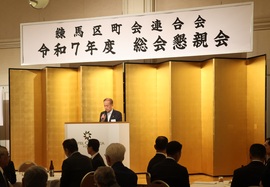 令和7年5月13日(火曜日)、ホテルカデンツァ東京地下2階「ラ・ローズ」において、令和7年度練馬区町会連合会総会を開催しました。令和6年度の「事業報告」、「収支決算報告」、「監査報告」、令和7年度の「事業計画(案)」、「収支予算(案)」、「会則改正(案)」、「役員改選(案)」について審議され、それぞれご承認をいただきました。