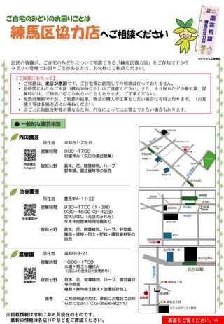 練馬区協力店のほかに、区立四季の香ローズガーデンでも、電話または窓口での園芸相談を行っています。ぜひご利用ください。