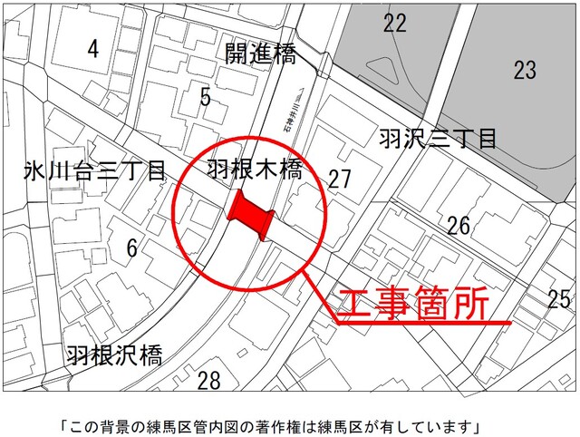 練馬区氷川台三丁目・羽沢三丁目地内(羽根木橋)