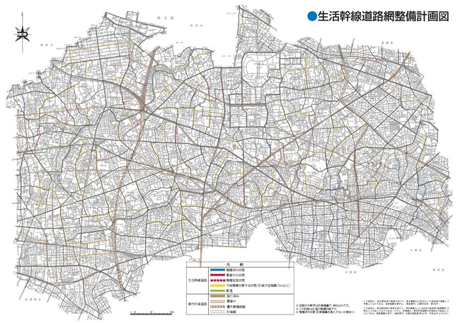 練馬区では「都市計画道路を補完し、地区の交通の主要な動線となる道路」を昭和63年度から「生活幹線道路」と位置付け、整備を進めています。