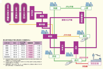 都心との相互アクセスが向上し、区北西部と都心周辺部の移動にかかる所要時間が短縮されます。