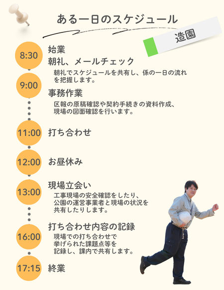 練馬区は公園の数がとても多いため、自然豊かな魅力がある一方で課題も多く存在します。大変だと感じる時もありますが、その分、仕事をやり遂げた時の達成感も大きいです。