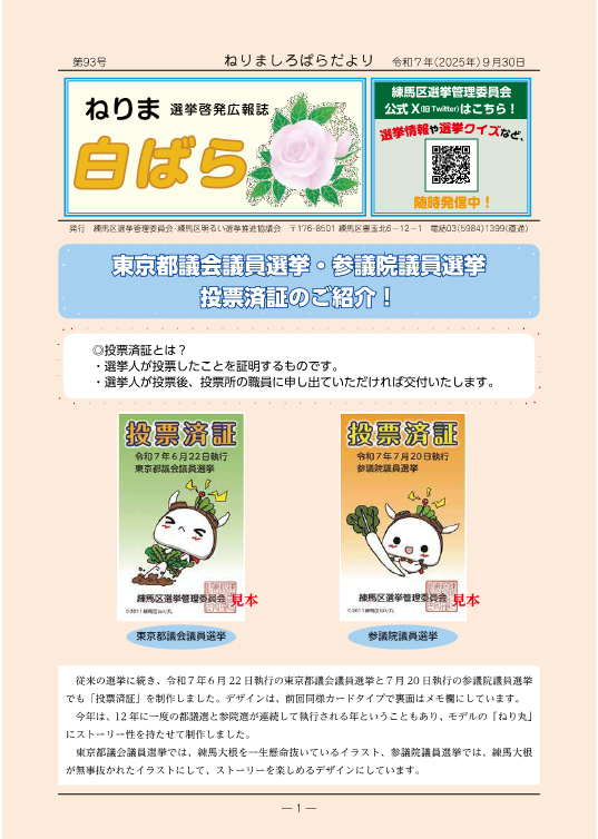 練馬区明るい選挙推進委員から選出された白ばら編集委員が、区民の皆様に、選挙に関心を持っていただくために、毎年「白ばらだより」を発行しています。「白ばらだより」は、図書館、区民事務所等の区立施設等で配布しています。また、PDF版を以下よりダウンロードすることが出来ます。